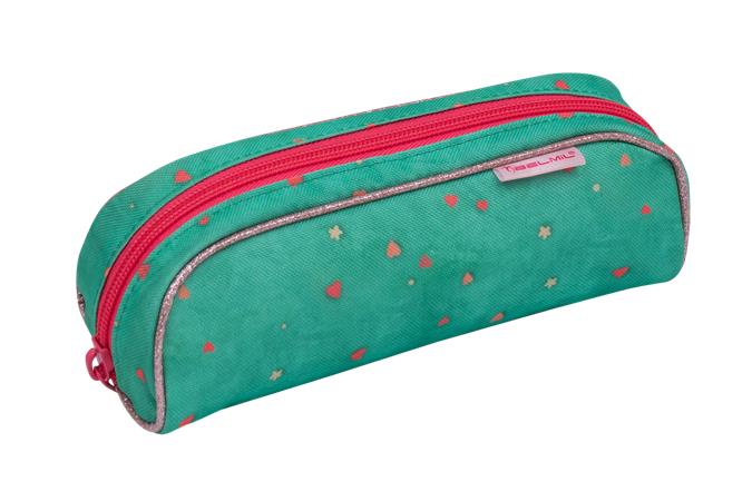 Tolltartó, henger alakú, cipzáras, BELMIL "Cute sloth", zöld-rózsaszín, szivecske